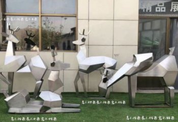 不銹鋼鹿雕塑景觀拉絲切面噴漆創(chuàng)意戶(hù)外幾何公園裝飾