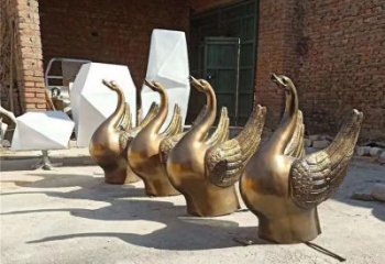 仿銅噴水雕塑,玻璃鋼景觀天鵝水池,為廣場(chǎng)園林?jǐn)[放